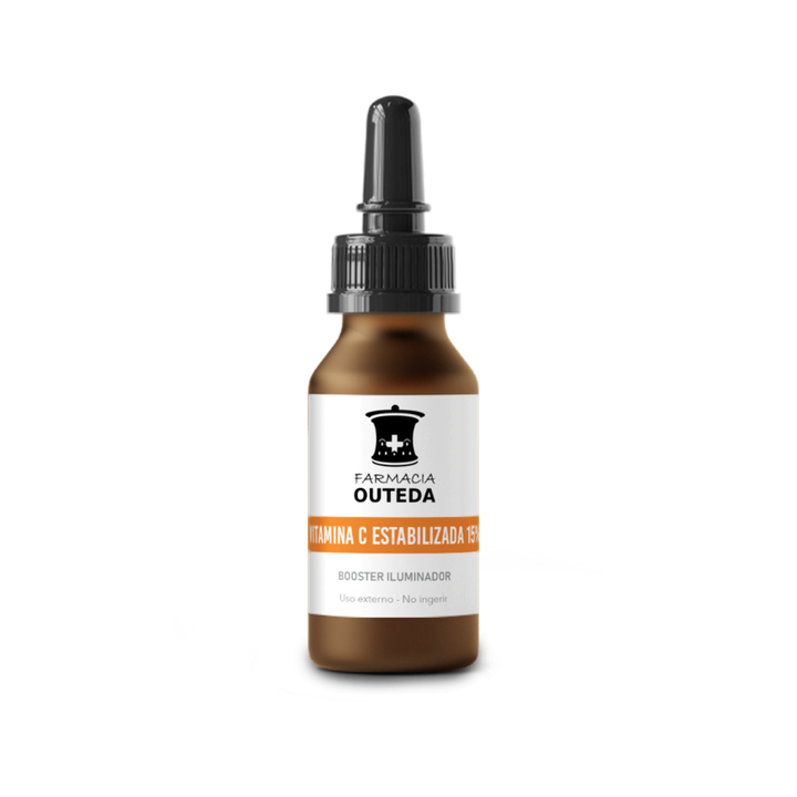 El Booster Vitamina C 15% Estabilizada Outeda es un tratamiento antioxidante intensivo que ayuda a prevenir y reducir las arrugas, mejorar la luminosidad del rostro y unificar el tono. Ideal para quienes desean un cutis más radiante, firme y uniforme. Su textura muy fluida se absorbe al instante, dejando una sensación fresca y nada grasa. Beneficios: Previene y suaviza arrugas y líneas de expresión. Mejora visiblemente el tono y la textura de la piel. Aporta luminosidad inmediata y efecto buena cara. Acción antioxidante intensa frente a los radicales libres. Textura ligera y de rápida absorción, sin brillos ni pesadez. ? Modo de uso:Mezclar 2-3 gotas en la palma de la mano con la crema habitual o aplicar directamente sobre la piel antes del tratamiento diario. Masajear suavemente sobre el rostro, cuello, escote y dorso de las manos. Usar por la mañana y/o noche. ? ¿Para quién está indicado?Apto para todo tipo de pieles, especialmente aquellas que presentan signos de fatiga, tono apagado o comienzan a notar pérdida de firmeza. Ideal para quienes buscan prevenir el fotoenvejecimiento y potenciar la luminosidad natural de la piel. Ingredientes: Aqua (Water) • Ascorbyl Glucoside • PentyleneGlycol • Glycerin, Sodium Hydroxide • C12-13Pareth-9 • Chondrus Crispus Powder • CitricAcid • Xanthan Gum • Chlorphenesin • o-Cymen-5-ol.
