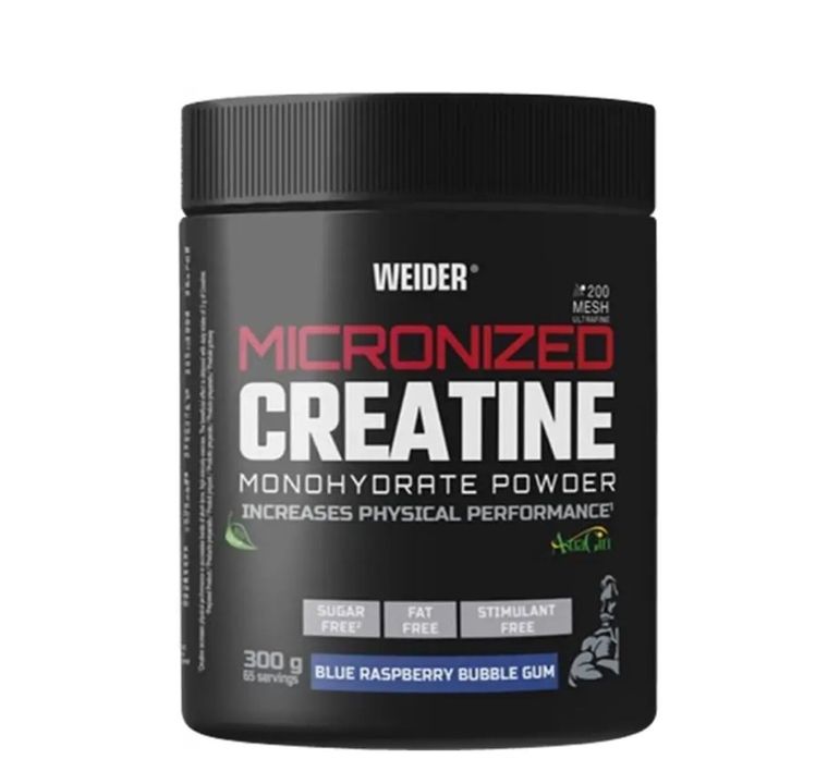 Weider Micronized Creatine Blue Raspberry Bubble Gum es creatina monohidrato micronizada de alta pureza con un sabor refrescante a blue raspberry bubble gum. Su partícula ultrafina (200 mesh) mejora la disolución y la absorción. Fórmula sin azúcar, sin grasa y sin estimulantes: perfecta para potenciar el rendimiento en entrenamientos de alta intensidad.