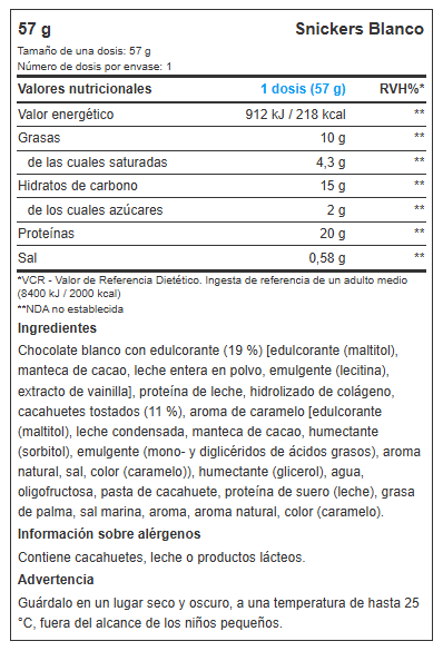 Mars Snickers White Low Sugar HiProtein Bar es la versión alta en proteínas de la clásica Snickers Blanca, ahora con un contenido reducido de azúcares y un sabor fiel a la original. Combina cacahuetes, caramelo y cobertura de chocolate blanco con un centro estilo turrón, ofreciendo una opción práctica para quienes buscan un snack dulce con un aporte extra de proteínas.