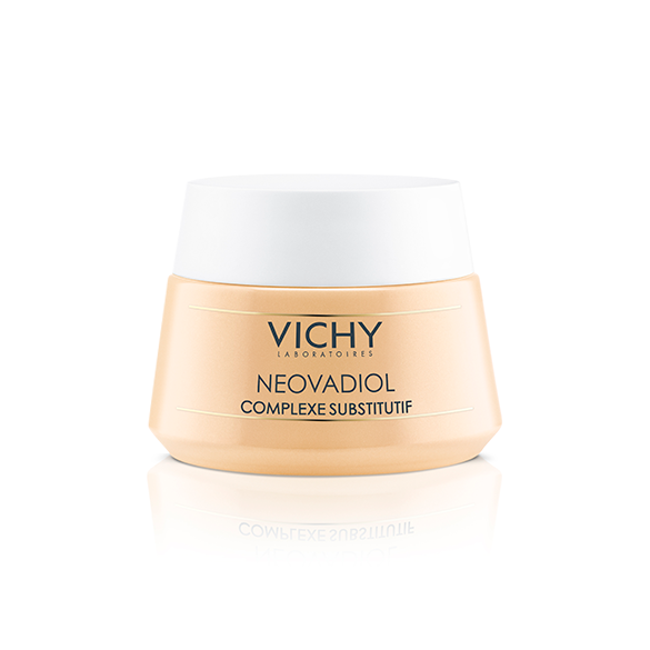 El primer tratamiento cosmético de Vichy para rejuvenecer el aspecto de la piel de la mujer durante la menopausia. La piel se transforma visiblemente, redensificada, con volúmenes remodelados y luminosidad restaurada. COMPOSICIÓN: Proxylane, Hepes, Glicerina, Hedione, Ácido Hialurónico. INDICACIONES: Indicado para mujeres que notan, debido a los efectos de la menopausia, falta de densidad, descolgamiento, arrugas y pliegues, pérdida de elasticidad y falta de luminosidad. BENEFICIOS: - Mejora la densidad de la piel - Reposiciona volúmenes - Aporta luminosidad - Homogeneiza el tono - Aporta un aspecto fresco al rostro. MODALIDAD DE EMPLEO: Aplicar la crema para pieles normales/mixtas por la mañana y/o por la noche en todo el rostro, realizando movimientos suaves de dentro hacia fuera. Para potenciar la acción del tratamiento, se aconseja utilizarlo en combinación con el sérum Neovadiol Complejo Sustitutivo. MASAJE REMODELANTE: PÓMULOS, ÓVALO Y CUELLO: Arrastrar los dedos doblados con una ligera presión sobre los pómulos hasta la raíz del cabello (repetir 5 veces). Pellizcar el óvalo a la altura del mentón con los dedos doblados desde la barbilla hasta las orejas (repetir 5 veces). Presionar con el dorso de los dedos y arrastrar suavemente desde la parte superior del cuello hasta la clavícula.
